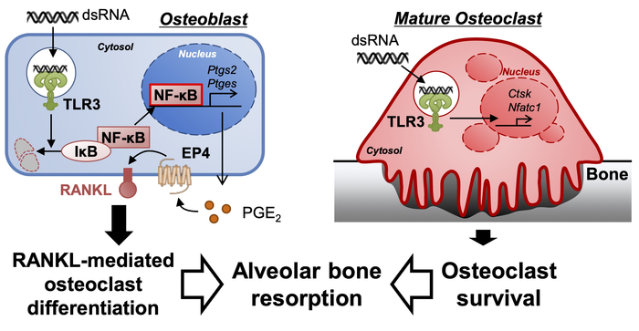 Looking ahead, the researchers plan to further examine how dsRNA - by signaling immune system receptors on stromal osteoblasts to make more PGE2 - contributes to progression of periodontitis over time. Understanding the underlying mechanisms is the foundation for novel development of drugs to prevent bone loss from gum disease.